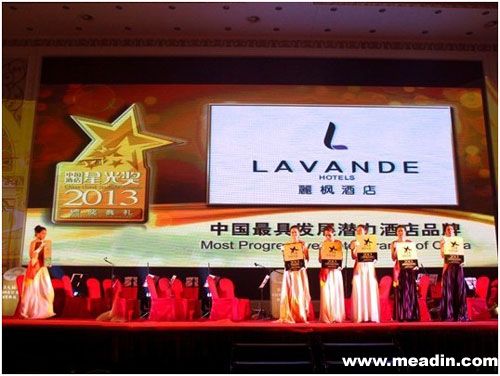 3月13日,在深圳举行的2014亚洲论坛暨第九届中国酒店星光奖颁奖典礼上,铂涛酒店集团旗下的LAVANDE麗枫酒店获得“中国最具发展潜力酒店品牌”殊荣。