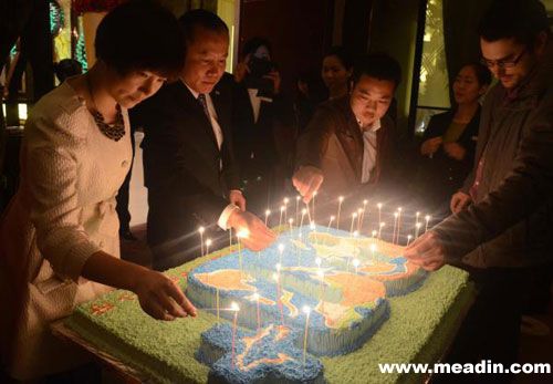 宁德万达嘉华酒店总经理和嘉宾一起点燃“60+”主题蛋糕