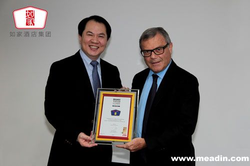 3月27日,世界上最大的广告和品牌营销服务集团WPP集团的首席执行官苏铭天爵(Martin Sorrel)士一行访问了如家酒店集团。这些远自英国而来的客人此行的目的主要是为给如家酒店集团旗下品牌“如家酒店”颁发“中国品牌100强”证书。
