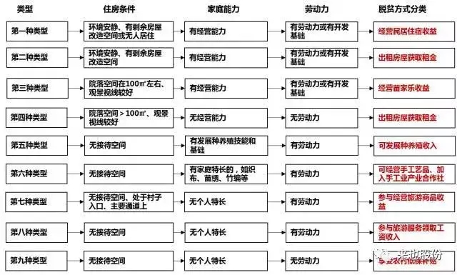 根据贫困户的具体情况,再划分出九种类型,以此来制定相应的参与方式,确保每一户贫困户都能通过有效的途径参与乡村旅游脱贫致富。