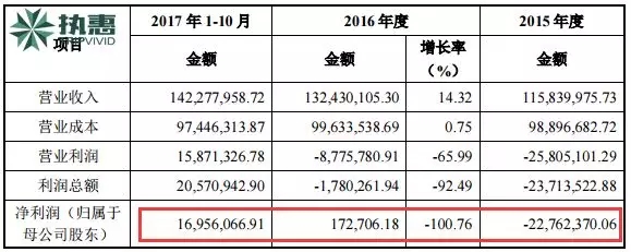 公开转让说明书显示,公司2017年1-10月收入已超过2016年全年总额,增长幅度逐步扩大。2015年至2017年1至10月,泰达航母分别实现营业收入1.16亿、1.32亿、1.42亿;归母净利润分别为-2276.24万、17.27万、1695.61万。