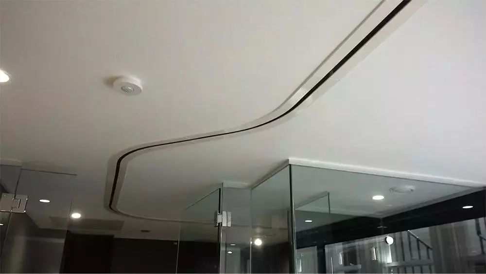 然后我就发现,在他们酒店房间的天花板上,通常会有这样的轨道,轨道的一边连着卧室,另外的一边是连着浴室。