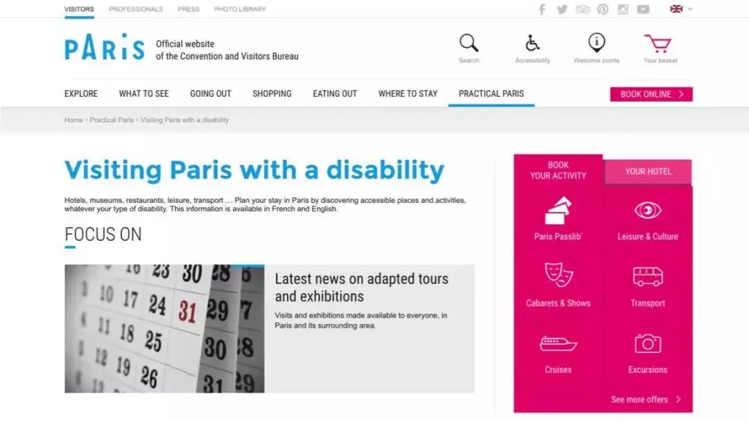 除了这样的实用的信息以外,它的这样一个页面,其实还传递出了一种潜在的但又很关键的讯息,那就是巴黎是一个残障友好的旅游目的地,它欢迎每一位游客来到巴黎旅游。