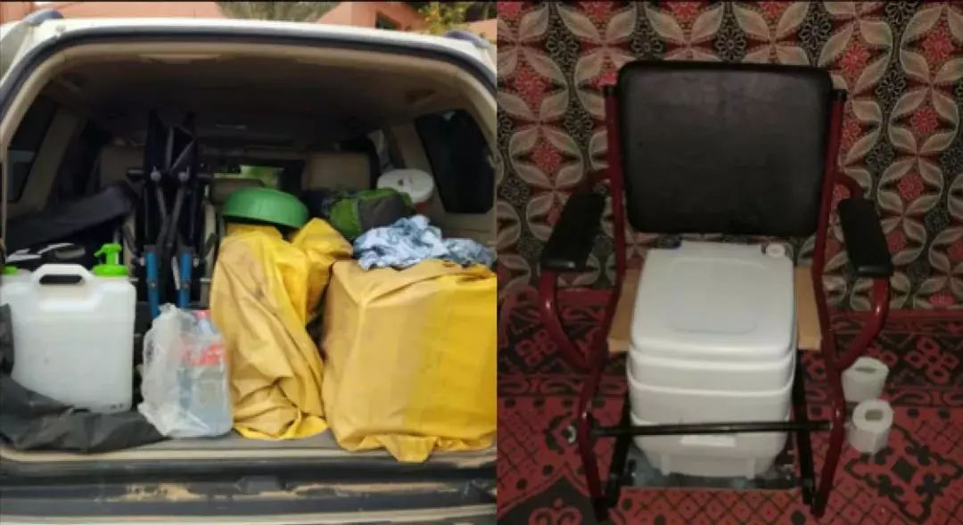 比如说我去摩洛哥旅游的时候,摩洛哥当地的硬件设施是很差的,为了完成我这一趟沙漠旅行的梦想,当地的工作人员就为我携带了一些移动的设备,比如说移动的马桶,还有移动的洗澡椅,放在我的车的后备箱上,这样我也可以完成一次沙漠的旅行。