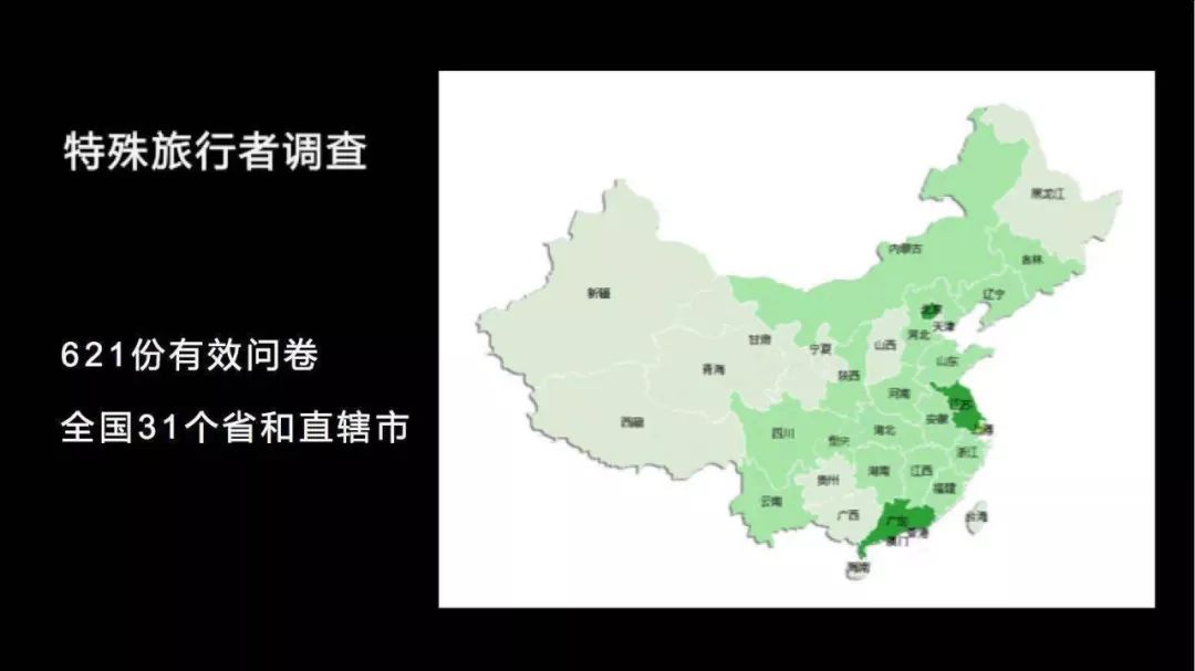 在前几个月我们做了一项针对全国621位特殊旅行者的调查,这份调查覆盖了全国31个省和直辖市。