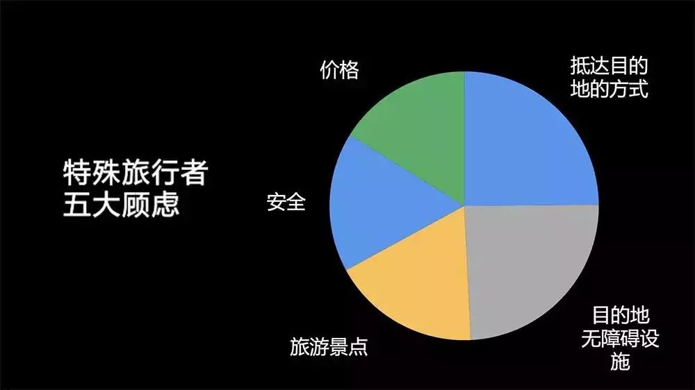 这份调查的结果显示,在选择一个旅游目的地的时候,特殊旅行者考虑最多的前三个因素,首先是抵达目的地的方式,也就是交通问题,其次是目的地的无障碍设施,在这两项之后才是旅游景点和当地的特色。