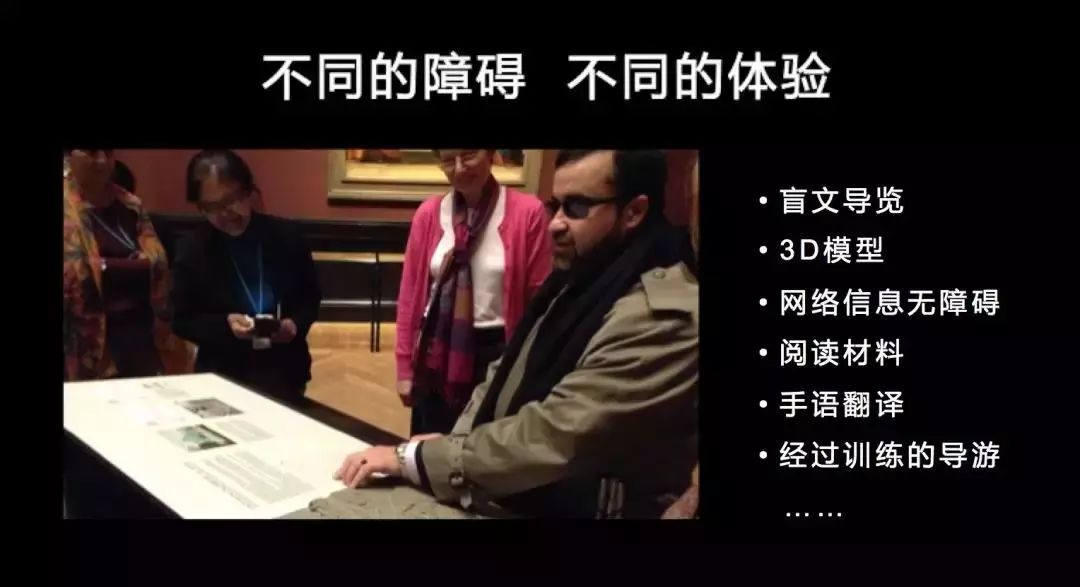 那在欧洲的博物馆里面,他们是如何来服务这些有视力障碍的人士的呢?那就真的是做一个3D的模型,或者是做一个这样的3D的复原的形象让他们去摸,让他们去感受,然后在这个3D的模型旁边还会有一些盲文的导览供他们阅读。