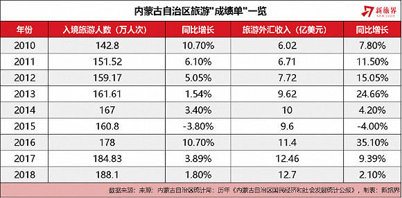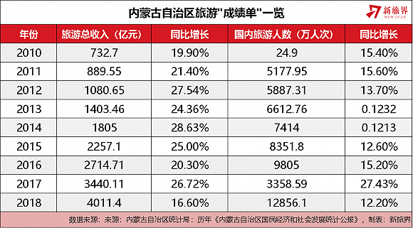 自2010起,内蒙古旅游业发展势头良好,对国民经济贡献持续加大。早在2015年冬季,内蒙古便接待游客3000万人次,旅游收入突破500亿元,同比增长30%。仅2018年元旦假期,内蒙古接待游客达230.94万人次,同比增长13.59%,真正实现了淡季不淡,旺季更旺的局面。“冷资源"焕发出经济活力,“冰雪旅游”正领跑"冰雪经济",成为内蒙古新的经济增长点。