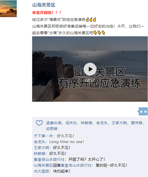 让我们一起来看看山海关景区的“朋友圈”