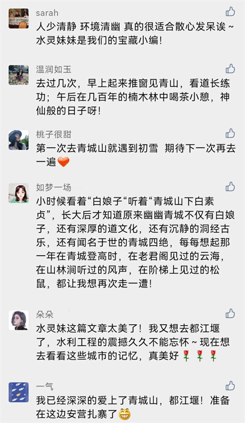 青城山—都江堰景区在各个平台上的点评好评如潮,大家对于景区的喜爱溢于言表。
