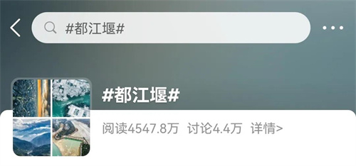 2021年,青城山—都江堰景区官方抖音账号相关话题#都江堰#、#青城山#、#成都青城山#等话题总阅读量约10.2亿。