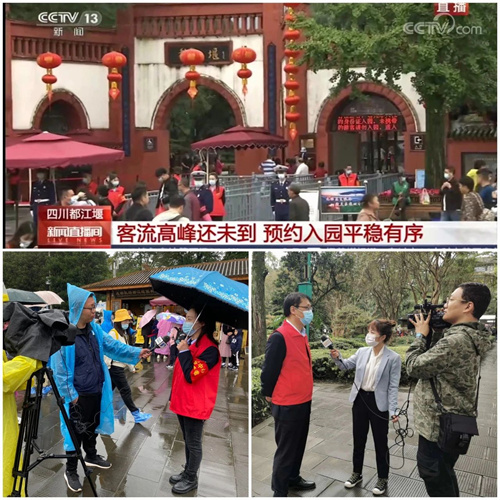 中央电视台多次以现场直播连线形式报道青城山—都江堰景区节庆活动、假日旅游、疫情防控、管理服务等内容。