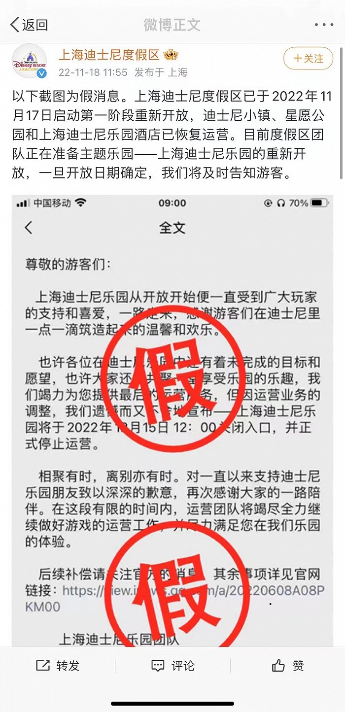 上海迪士尼将停止运营?官方辟谣:假消息