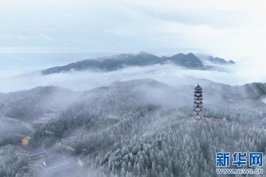 近日,江西省宜春市明月山景区迎来降雪。入眼处,山川素白沉静,云海浩荡苍茫,美如画卷。