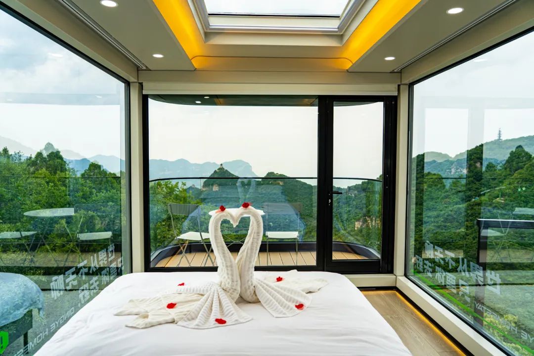 住在轻野最最重要的是绝佳的视野,躺在床上就能透过全景大窗把天地美景一览无遗!