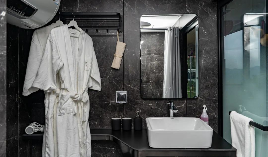 太空舱内部虽然空间不大,但足以让你享受生活。自动化的智能家居,合理的区域安排、干净整洁的浴室,甚至还有幕布投影让你在屋内就能看场星空电影。