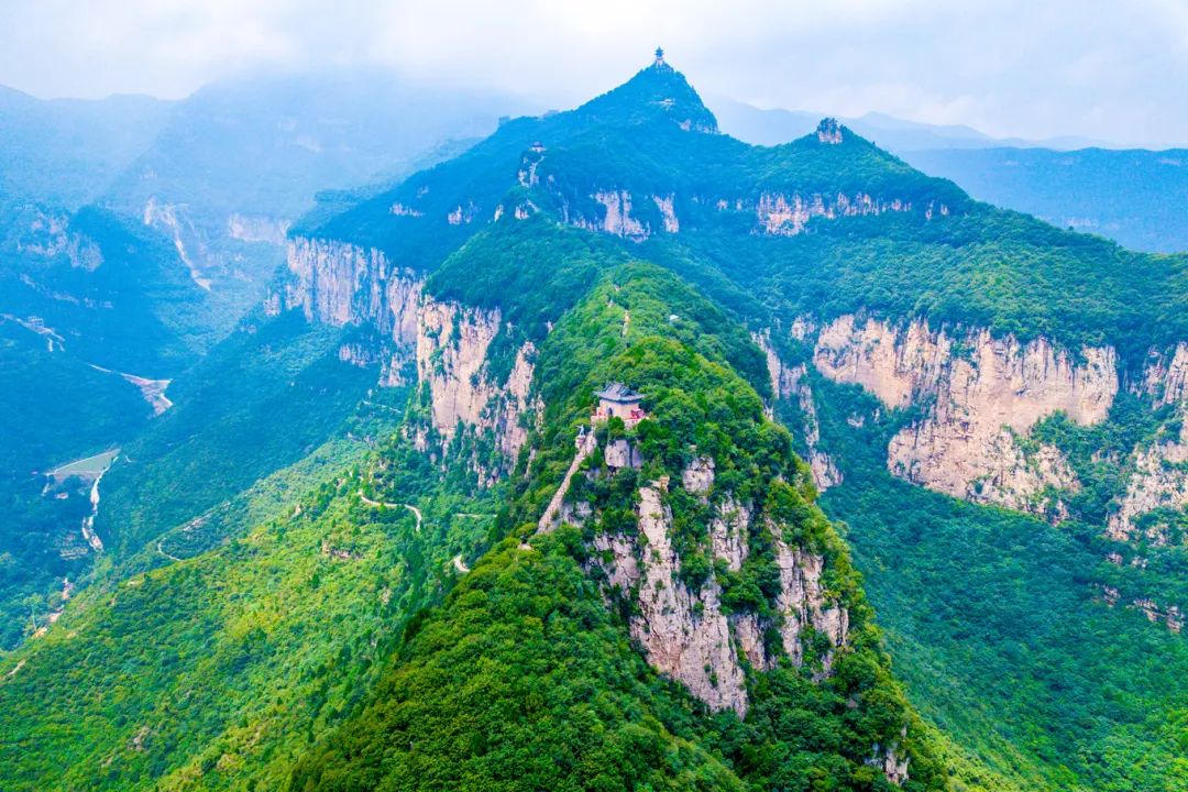 下了缆车再走15分钟左右台阶路,就能抵达云丘山最高峰——海拔1629米的玉皇顶。