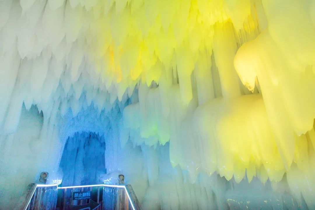 感受冰锥悬挂头顶的惊险与刺激,欣赏冰瀑“流淌”的动感与韵律。