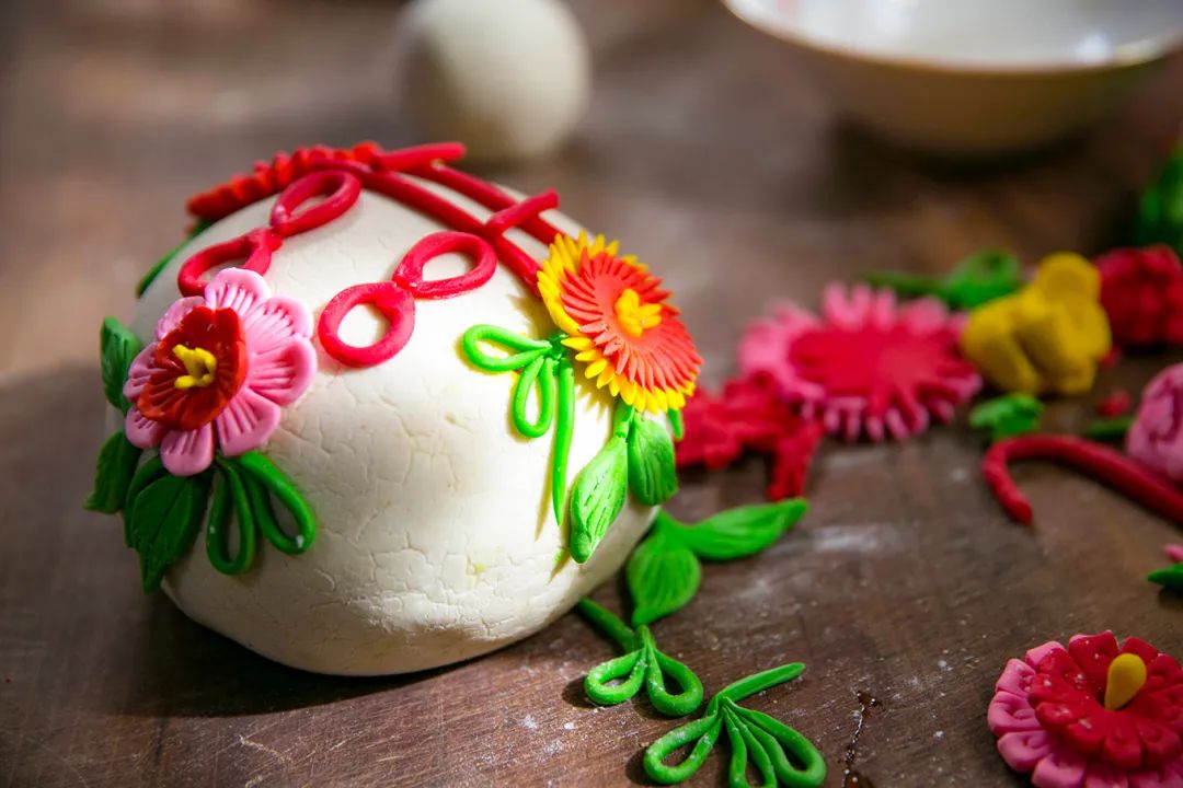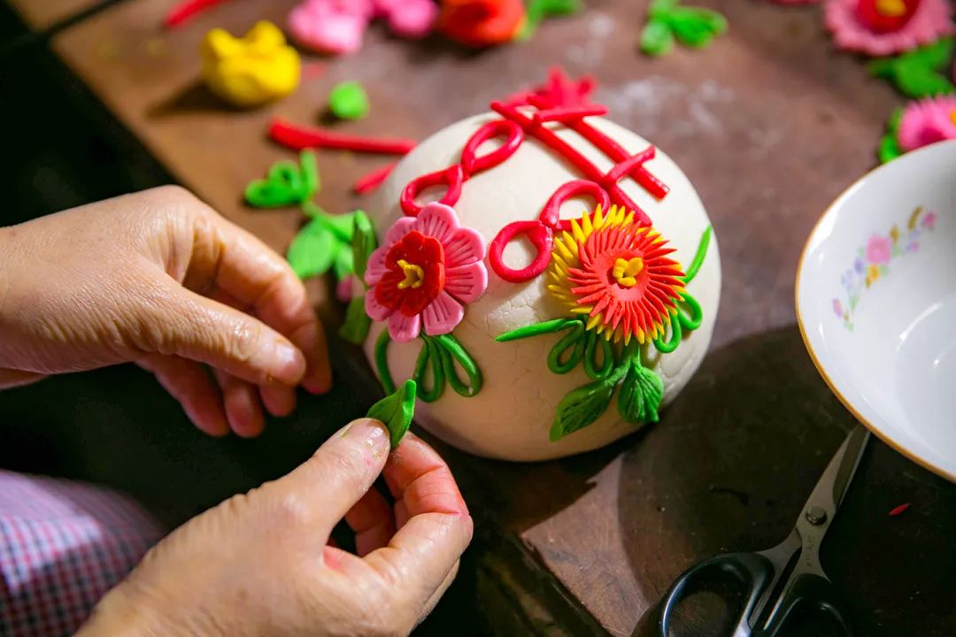 捏花馍,也是属于这里的特色风物。经过一系列的搓、捻、擀、切、捏,一个个栩栩如生的图案便从手中活脱脱地变出来,每一个人捏得都不尽相同,也都承载着不同的感情。