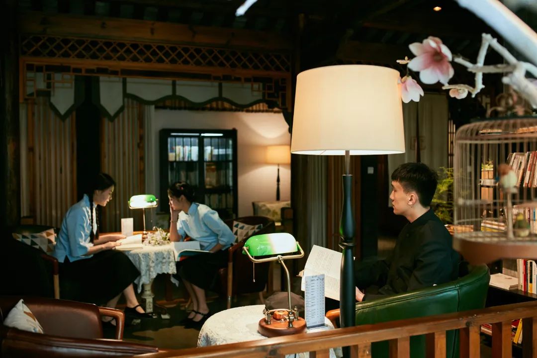 书院建筑面积约410平方米,大厅为书籍售卖区,内为休闲消费区,可品茗闲坐、喝咖啡聊天,翻翻时尚杂志、抑或阅读名家著作,于舒缓的音乐中放松身心,灯光柔和沉浸,让身体的温度和心里的燥热都“降降温”。