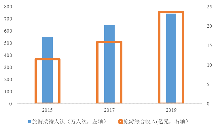旅游综合收入迅猛增长,文旅产业对于安仁镇经济和就业贡献重大。根据安仁镇管委会与新闻相关数据,安仁镇2015年旅游接待人次551.36万人次,综合收入11.43亿元;至2019年旅游接待人次为743万人次,综合收入23.67亿元。2015-2019年旅游接待人次年复合增长率为7.74%,旅游综合收入年复合增长率为23.67%。