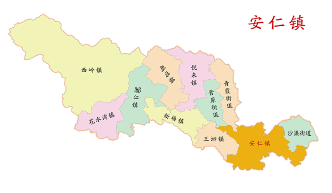 安仁镇(东经103°37′12″,北纬30°30′37″)隶属于四川省成都市大邑县,地处成都平原西部、大邑县南部,东临崇州市杞泉镇,南接新津区方兴镇,西连邛崃市冉义镇,北靠大邑县苏家镇。小镇下辖6个行政村,28个居委会,行政区划57.22平方公里。