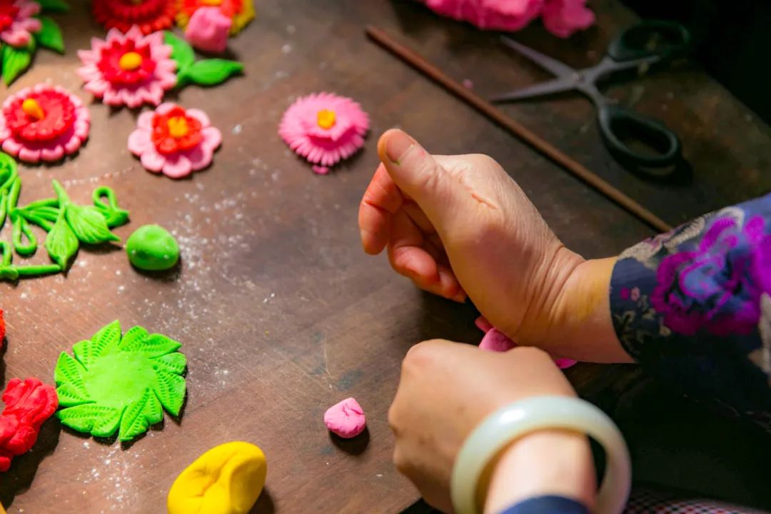 花馍院捏彩虹夹心花馍,可以品尝到“彩虹”的味道噢!