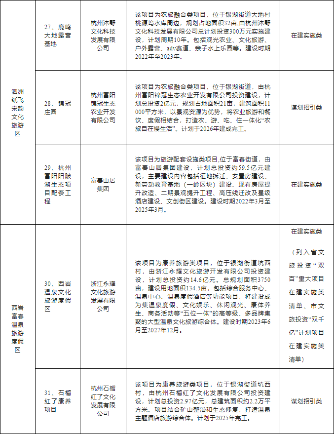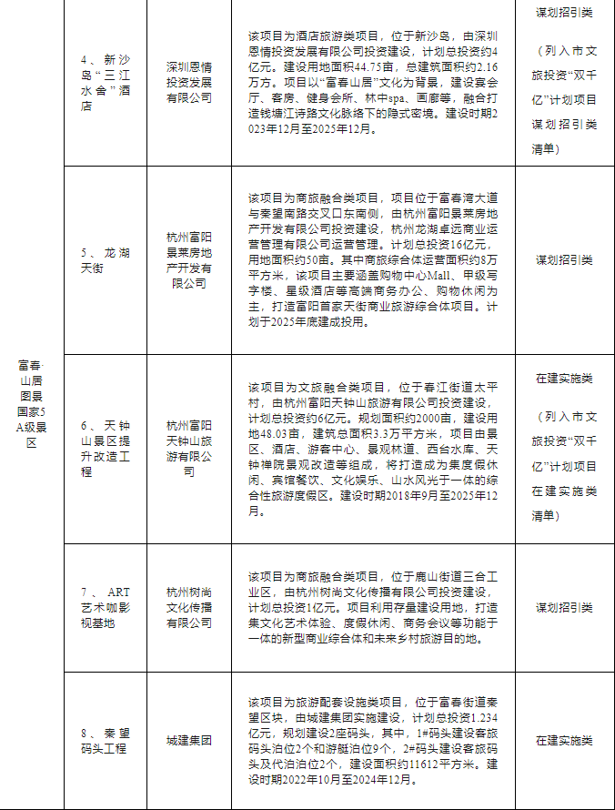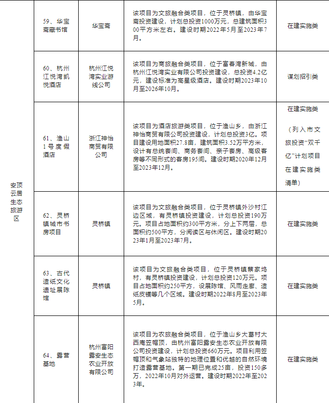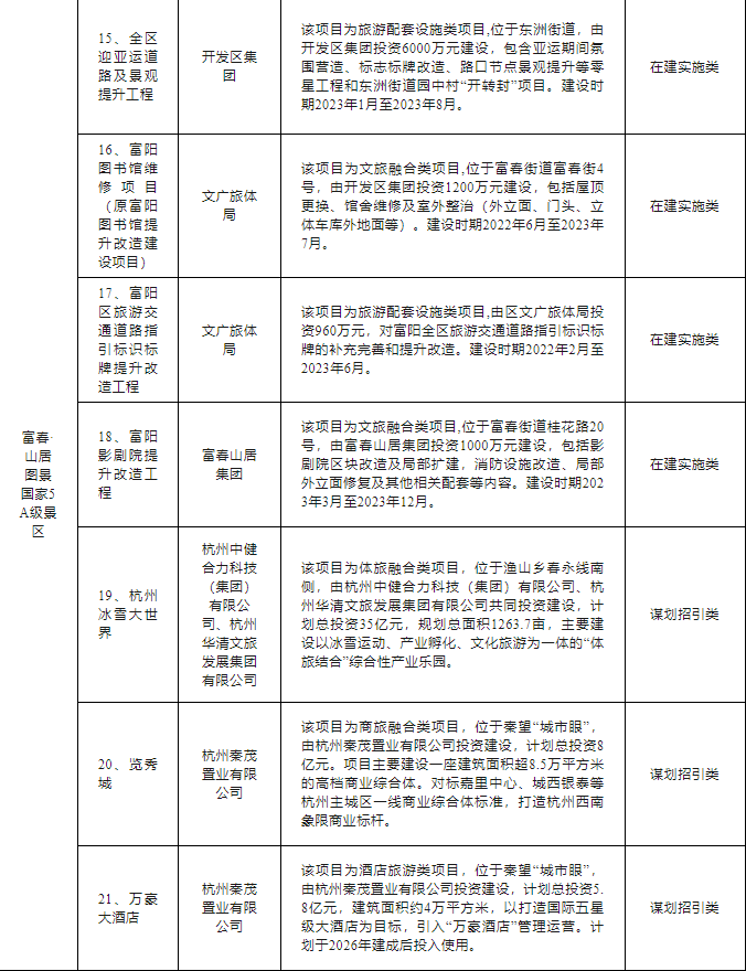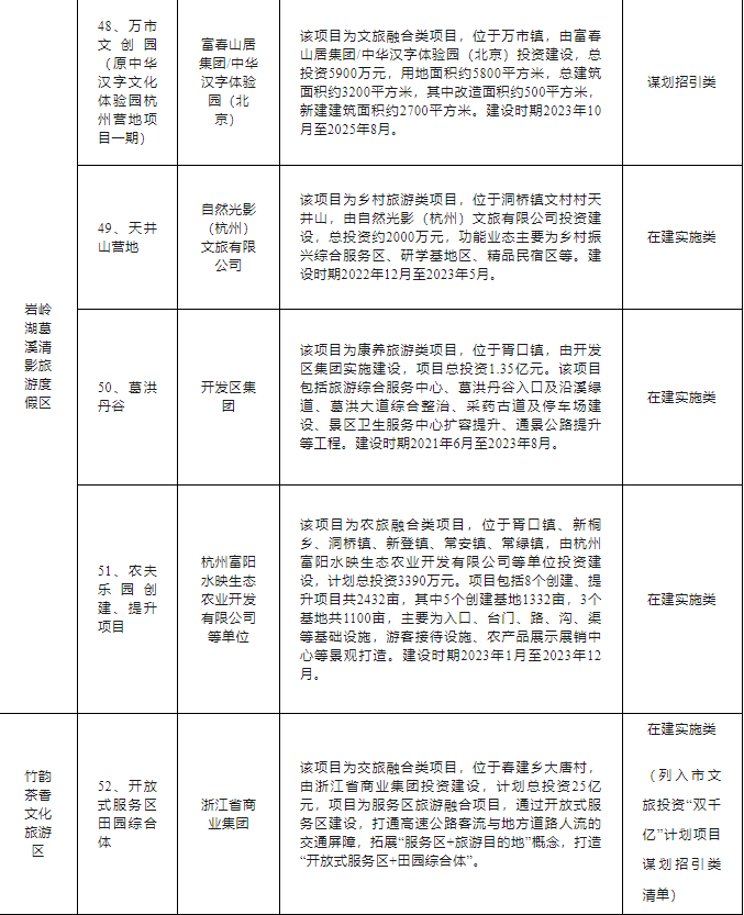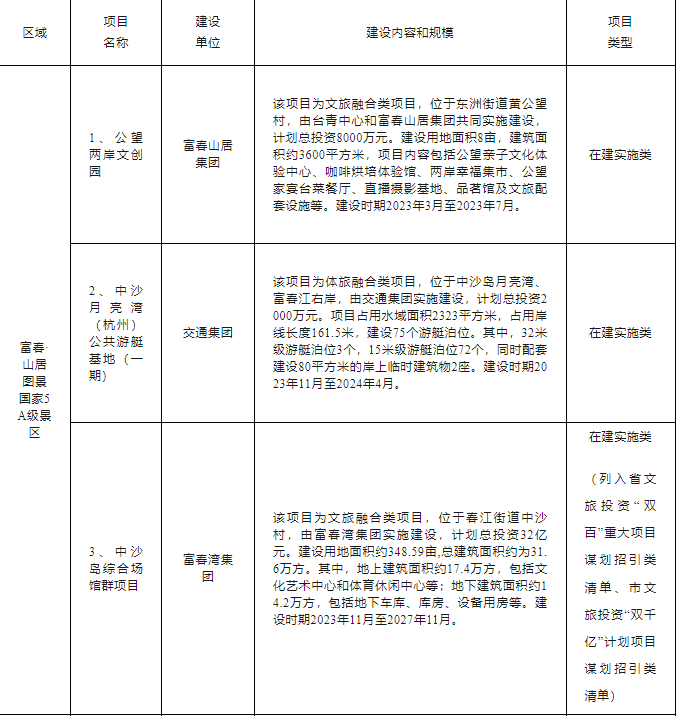 富阳区文旅“双百亿”行动计划项目清单如下: