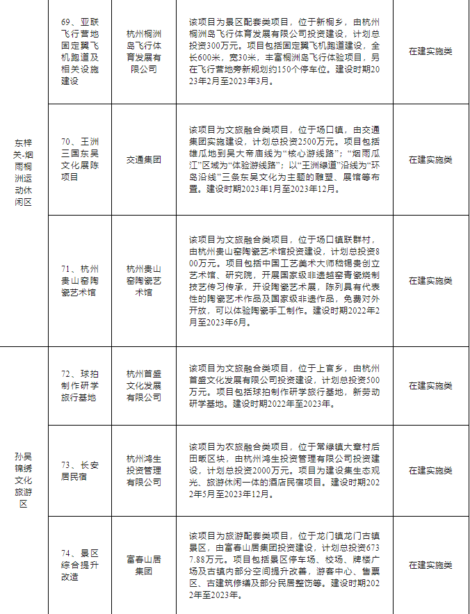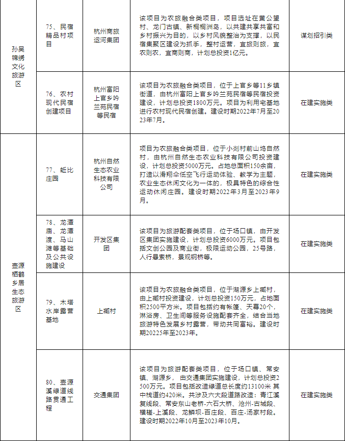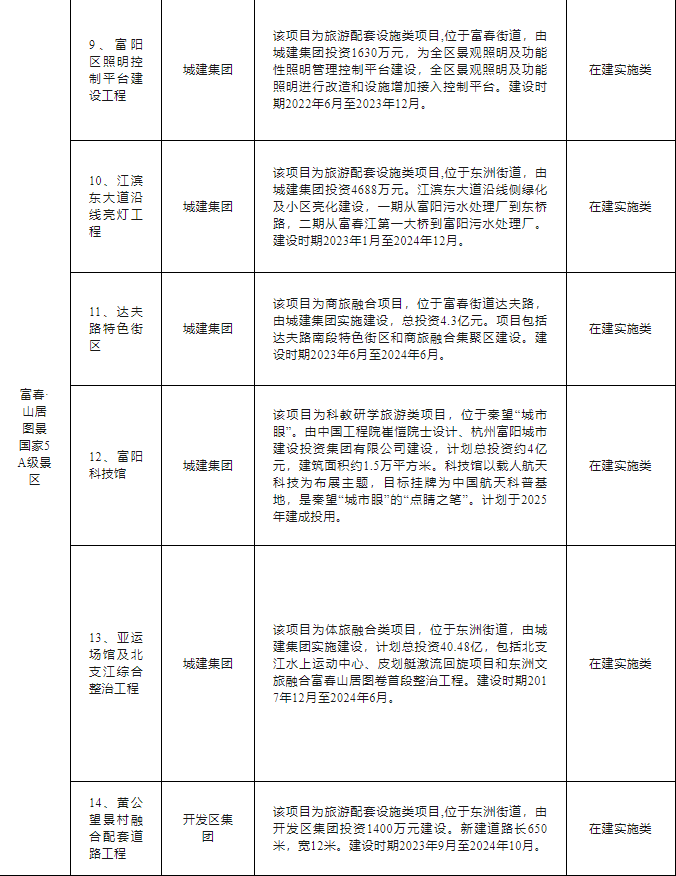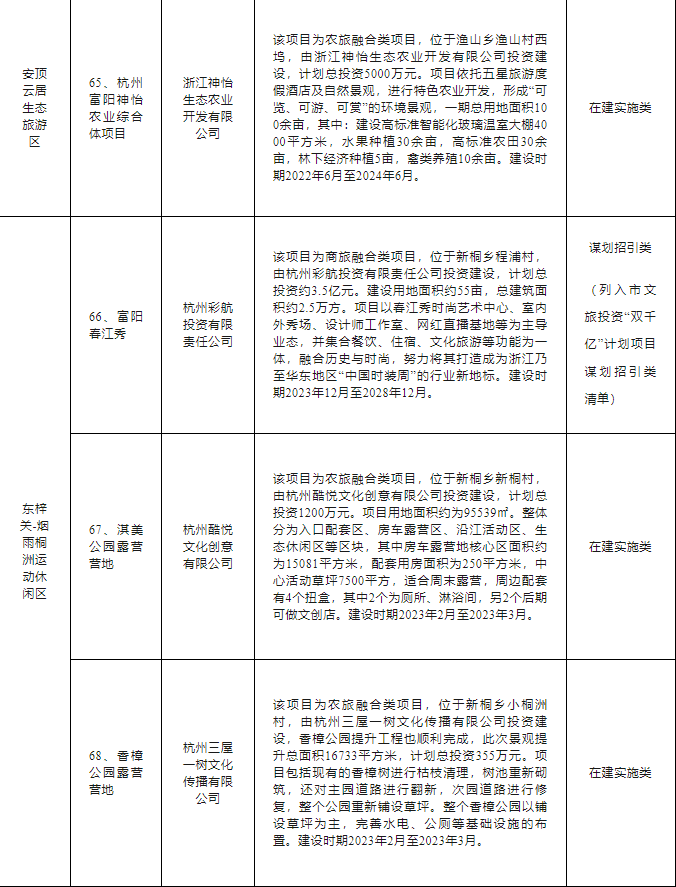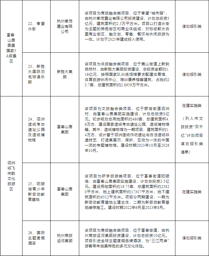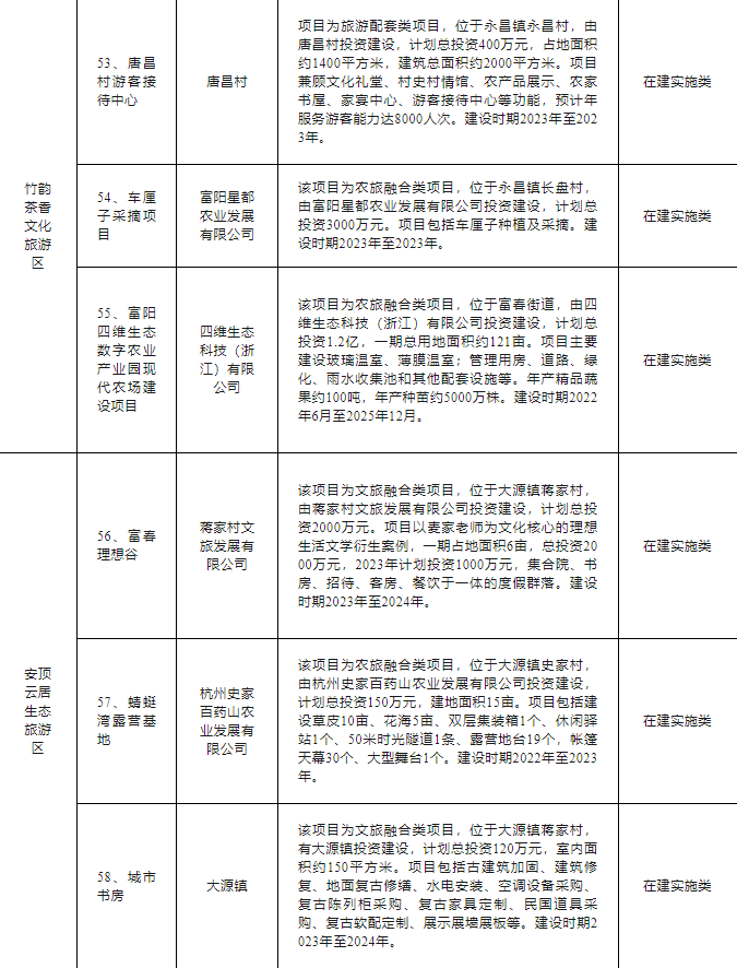 富阳区文旅“双百亿”行动计划项目清单如下: