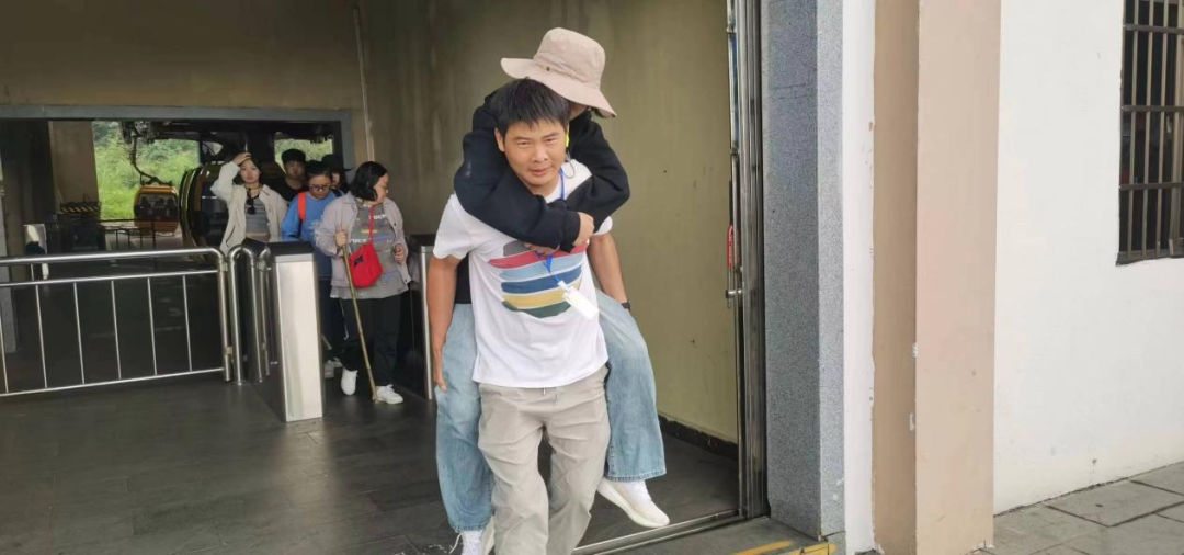 9月30日上午,在中庵索道站下站,有一名游客突然晕倒,中庵索道站工作人员罗增峰第一时间将游客背到石鼓寺医疗点救治。