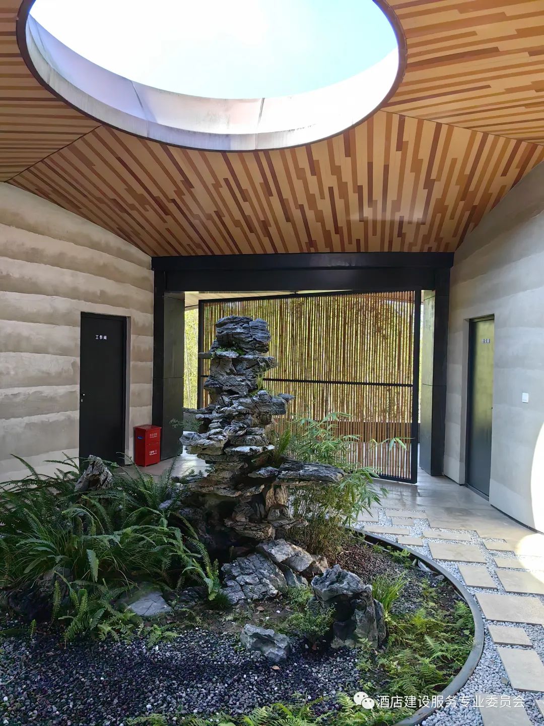 ——场地起伏,架空和吊层为自然通风创造了更好条件,出檐与遮阳格栅好比老屋窗外的层层竹影。环秀山房外,360度的遮阳格栅系统,给夏日以斑驳凉意;