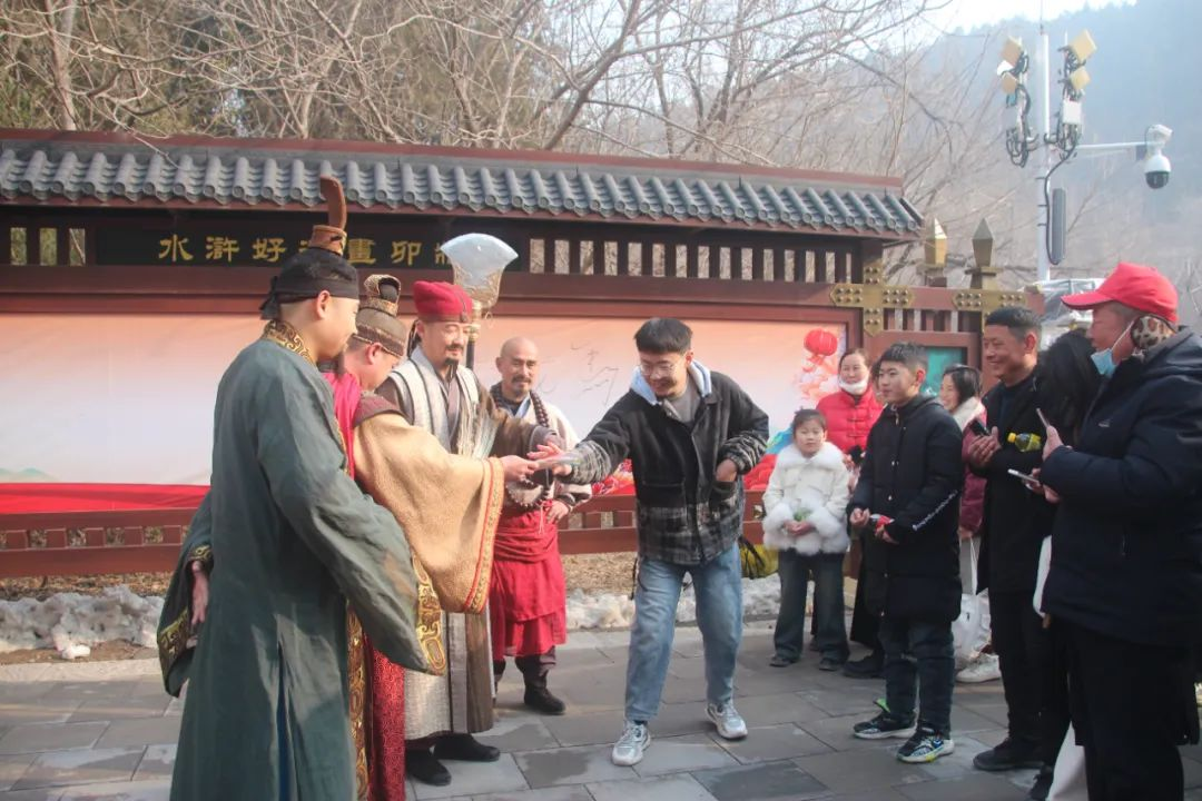 登山祈福、精彩演艺、丰富的年节活动吸引了众多游客纷至沓来,广大游客和梁山好汉一起过大年。