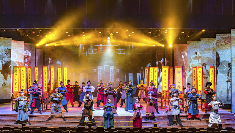 锣鼓声声,龙狮起舞,108好汉出城恭迎四海宾朋,送出新年祝福。福禄寿喜集体亮相给大家拜年,将满满的福气、运气、财气送给游客。游梁山,必看《忠义梁山泊》大型舞台剧。舞台剧以《水浒传》为蓝本,再现《水浒传》英雄经典故事,带您体验一次穿越千年、梦回梁山之旅。为丰富游览内容,满足广大游客旅游需求,景区还在断金亭、黑风亭、号令台、忠义堂等准备了碗乐、古筝、绝活杂技、扬琴、快书等传统民俗曲艺节目,丰富了游客精神文化生活,营造喜庆祥和的节日氛围。