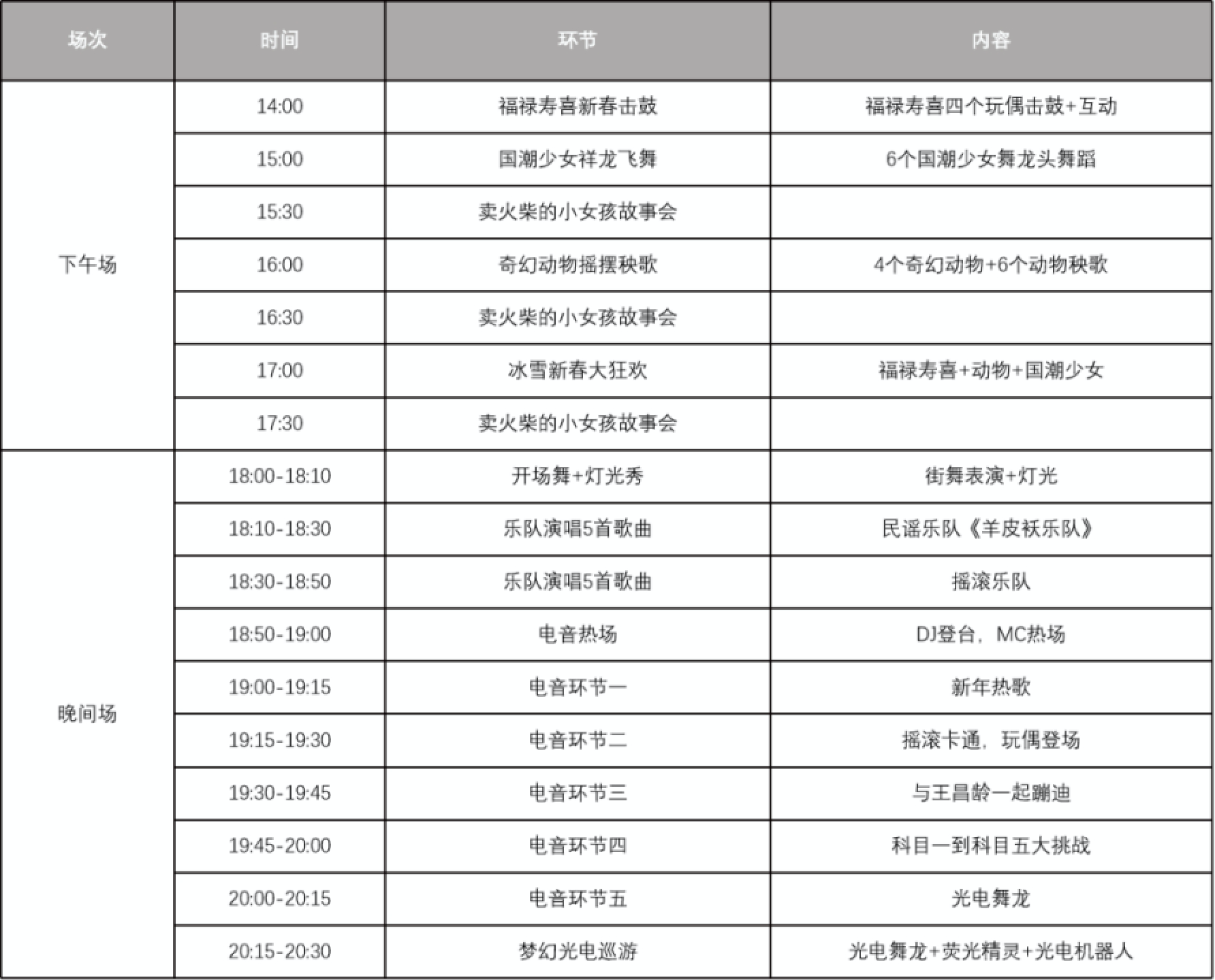 现场除了封神演义外,腊月二十八至正月十五,九曲脱口秀、歌声阵阵添锦绣(陕北民歌)、大圣献福(西游模仿秀)、吉祥唢呐、纳福迎新财广进(魔术表演)等全天候轮番精彩上演(具体演出时间以实际为准)。