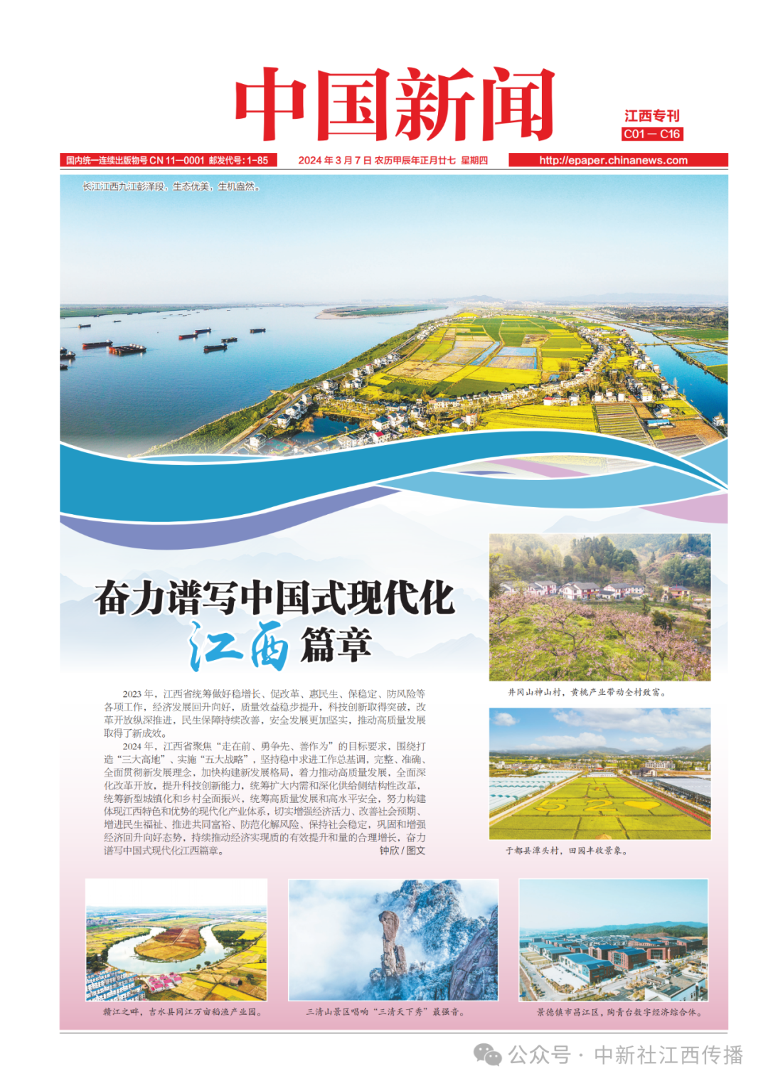3月7日,中国新闻报推出全国两会江西专版报道《三清山全力打造高品质世界级旅游目的地》