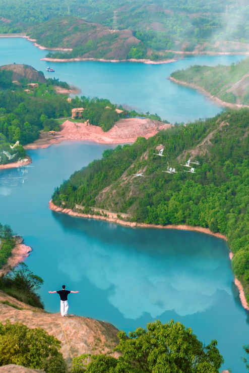 龟峰景区,是徐霞客当年进入江西的首游地。在龟峰景区盘桓期间,他经历了晴天、阴天、雨天的天气变化,也欣赏到了龟峰景区在不同天气下呈现出来的美景。于是,他用自己独特的视角,挥笔写下洋洋洒洒3000余字的《江右游日记》,发出“盖龟峰峦嶂之奇,雁荡所无”的由衷赞叹。