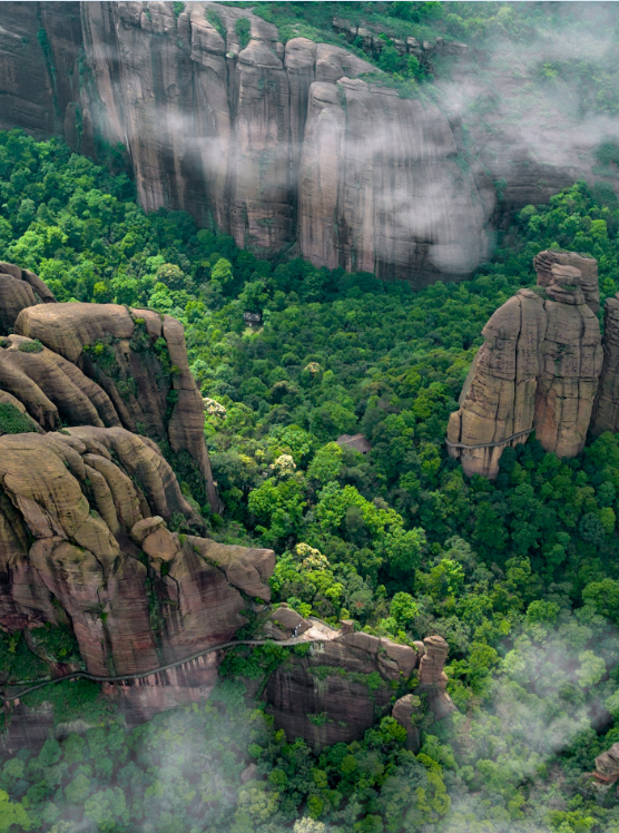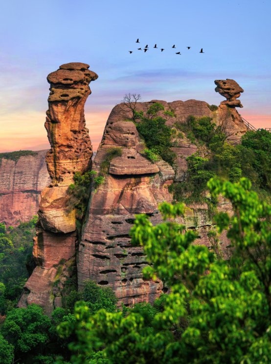 ④骆驼峰:龟峰景区最高峰,前往骆驼峰的沿途中都能拍出很多大片,可以同时取景到山崖、下方森林和远处的山峰,很有感觉。