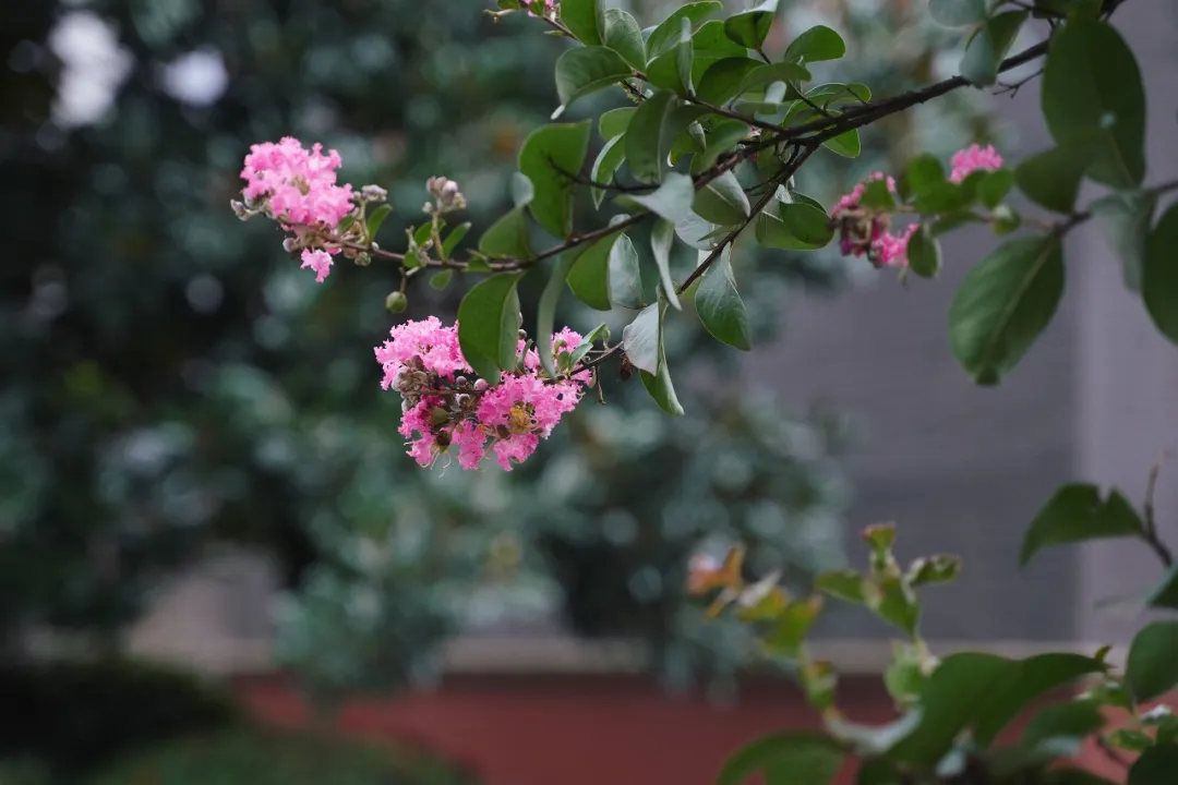 在安仁古镇的刘氏庄园可以看到这些紫薇花鲜艳美丽的紫薇花花期通常为六月到九月几乎贯穿整个夏季算算花期有百余日了因此,紫薇也叫做“百日红”。