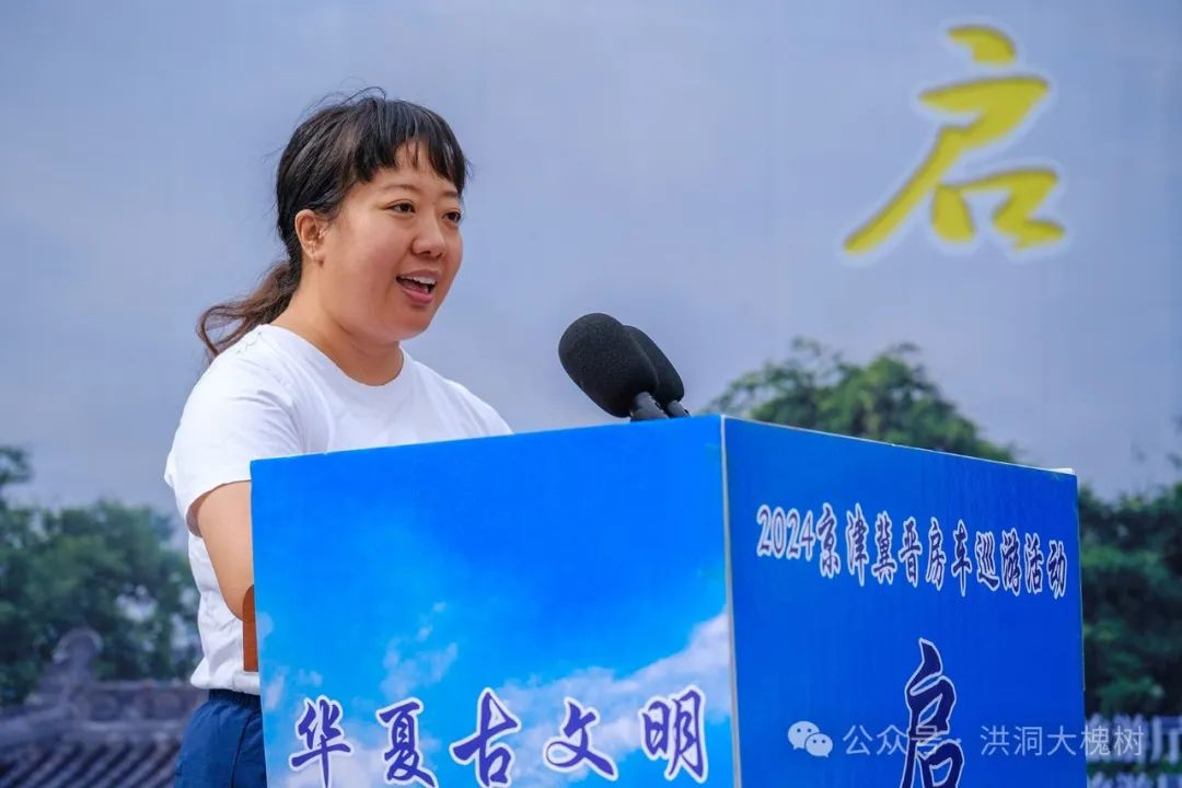 启动仪式现场气氛热烈,洪洞县委常委、常务副县长王欣登台发表了热情洋溢的欢迎辞。王欣副县长以诚挚的话语,向各位嘉宾表达了热烈的欢迎与衷心的感谢。他指出,洪洞作为历史文化名城,拥有丰富的旅游资源和独特的文化魅力。此次房车巡游活动选址洪洞大槐树寻根祭祖园,是推动洪洞文化旅游发展的重要契机。同时,他期望通过此次活动,进一步强化京津冀晋地区的文化旅游交流合作,共同推动文化旅游产业繁荣昌盛。临汾市文化和旅游局宣传科负责人姚政进行了精彩的文旅推介。她以专业的视角和生动的语言,向大家全面展示了临汾市丰富的文化旅游资源,让在场嘉宾对临汾有了更深入的了解。