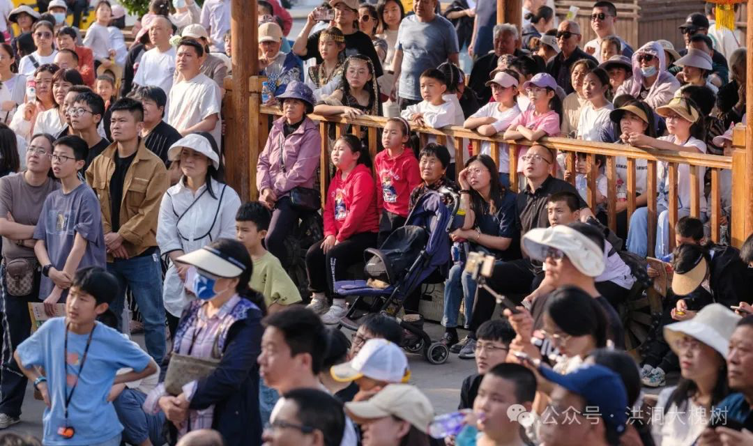 上午9点半,景区仿一代大槐树处,随着衙役的铜锣声,以600年前明朝大移民历史为依据改编的《大槐树移民》实景演出震撼上演。观众席上座无虚席,游客们聚精会神地观看着演出,很多人被演员们精湛的演技所感染,当聚集在大槐树下的人们被官兵们带着离开故土时,游客们纷纷流下了感动的泪水。“演得真的太好了,一个演出就让我们了解到了明朝的移民历史,感觉这次假期来对了地方。”看完表演后,来自河南新乡的赵先生告诉工作人员,“听说今天景区还发月饼,感觉这张门票钱值了。”