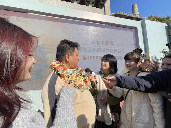 来自厦门的游客谢锦绸成为了这个“幸运儿”。“这是我第一次到临海,这次是跟朋友一起报了个团。”戴上花环,收下临海特地为第2000万名游客准备的文旅“大礼包”,谢锦绸还有点“懵懵的”,“我很意外,也觉得很幸运,礼物是什么不重要,重要的是心意。”