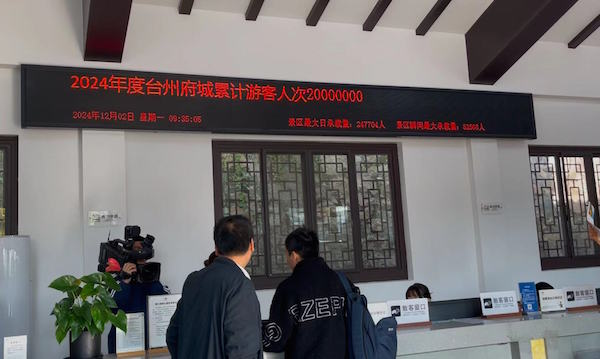 2024年12月2日9时35分,台州府城文化旅游区游客服务中心电子屏上,滚动出现“2024年度台州府城累计游客人次20000000”的字样。12月2日,浙江台州临海台州府城文化旅游区迎来了今年第2000万名游客,这是景区开发以来,年度游客人次首次突破2000万。