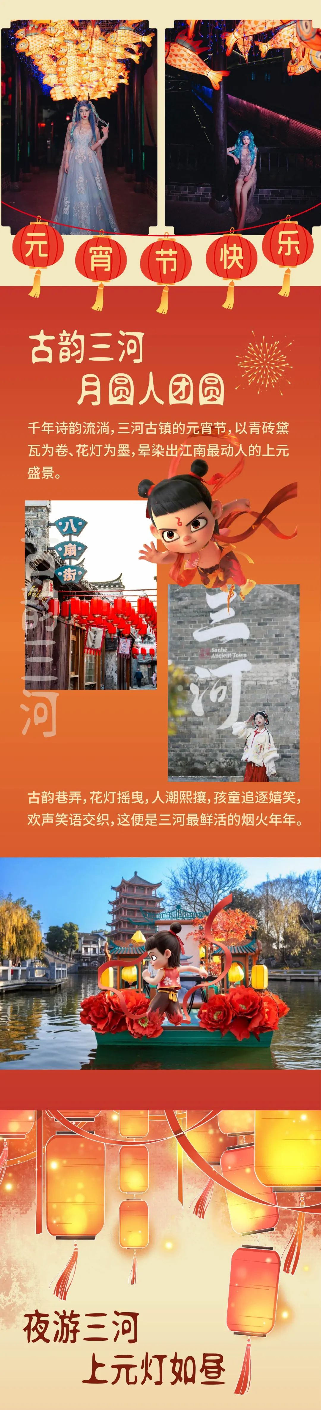 起猛了!哪吒、敖闰来三河古镇了… 三河古镇景区 · 2025-02-11 16:06:44 分享到 打开微信“扫一扫”,打开网页后点击屏幕右上角分享按钮。 这个元宵,真人COS西海龙王敖闰,邀你共赴三河欢度佳节。 三河古镇 0