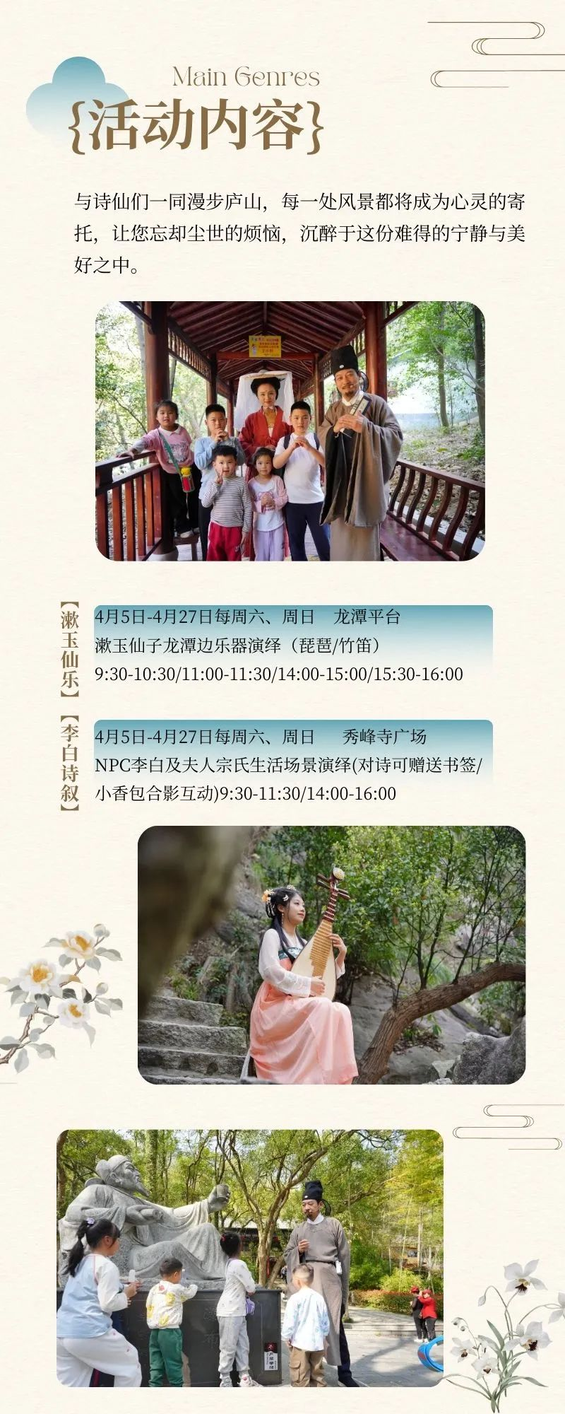 在这浪漫美好的四月,庐山风景区精心准备了一系列精彩纷呈的活动,从激情热浪的音乐狂欢,到充满文化韵味的传统体验,再到亲近自然的徒步挑战,每一项活动都饱含着庐山对游客的热忱欢迎。现在,就让我们一同走进庐山的春日活动大赏,开启一段难忘的春日之旅吧!