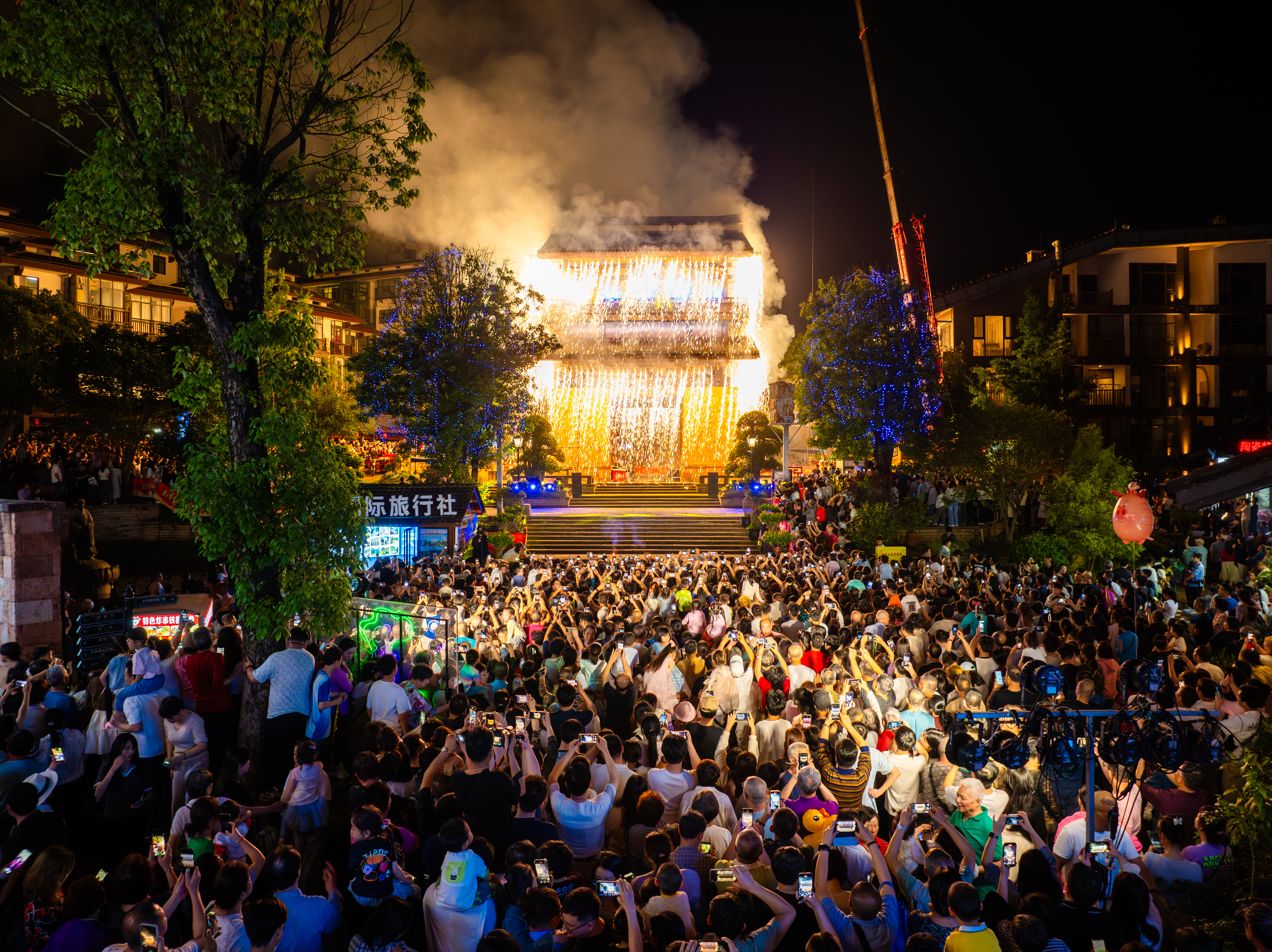 沉浸夜游深受追捧。针对Z世代年轻消费群体,抢抓China Travel风口,明月山以新场景、新业态、新模式引领假日潮流,催生假日文旅夜间消费。在温汤镇古井泉街南门楼,以夜空为幕、焰火作笔,伴随倒计时“3、2、1”话音,璀璨夺目的烟花瀑布如同银河倾泻而下,如天上楼阁般照亮了这个夜晚,成了这个假日一道亮丽的风景线。一场场璀璨夺目的烟花瀑布秀,点亮了夜空,也点燃了人们的热情,吸引了成千上万的游客前来观赏。