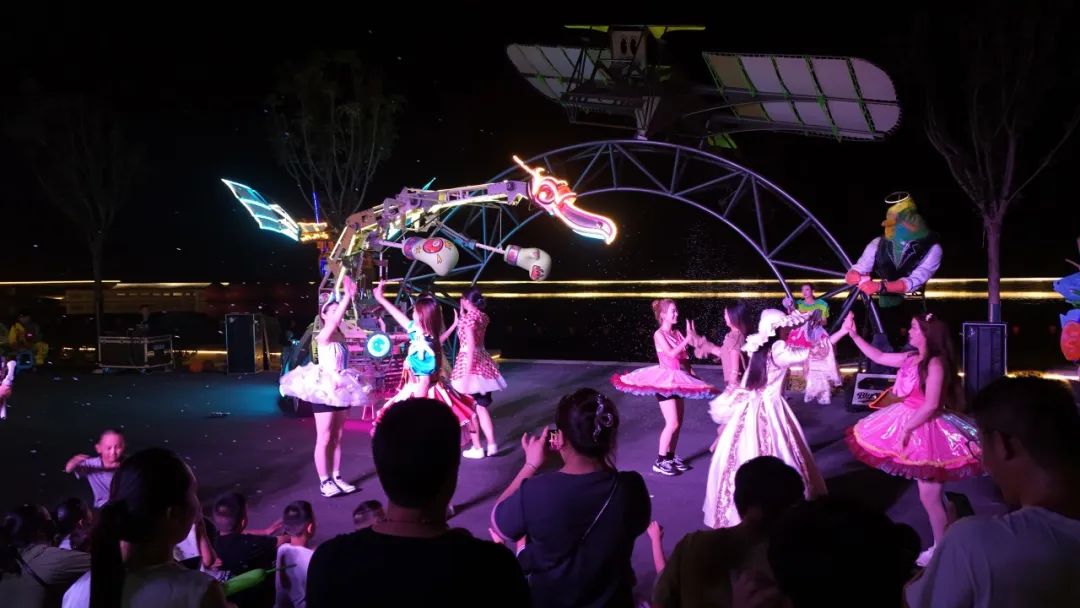夜场的精彩,可不止于“好看”这两个字能概括。从夕阳吻别湖面的傍晚,到星光铺满水幕的深夜,舞蹈的裙摆旋起阵阵热风,情景剧的剧情勾着人步步深入,国潮电音的鼓点撞碎水面的流光,怪车巡游的彩灯在人群里织出虹带——这里的快乐就像上了发条的陀螺,跟着一场接一场的狂欢不停旋转、升温,让你根本停不下来!
