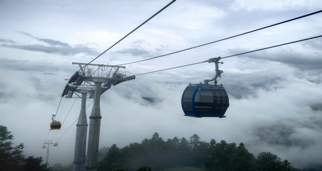 雪峰山索道是湖南省重点文旅工程项目,设计全长7600米,垂直高差1157米,单程运行时间约23分钟。起点无缝对接沪昆高铁溆浦南站,实现高铁与索道“零距离换乘”,显著提升区域交通枢纽功能和游客体验效率。
