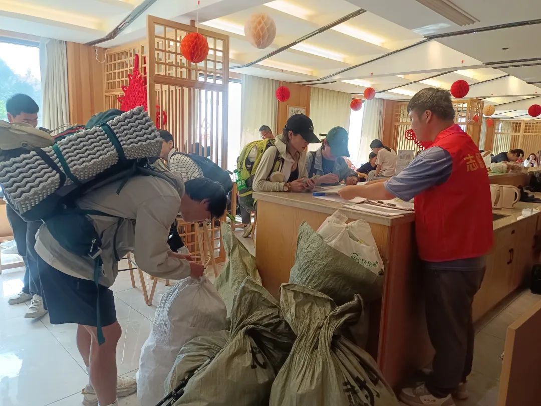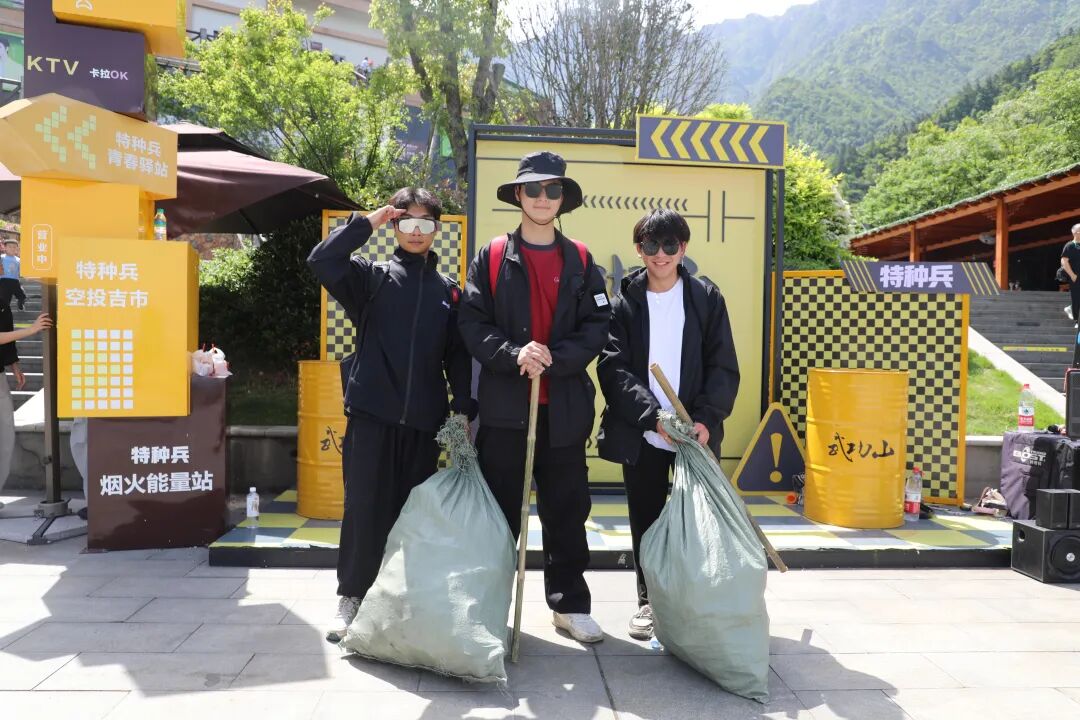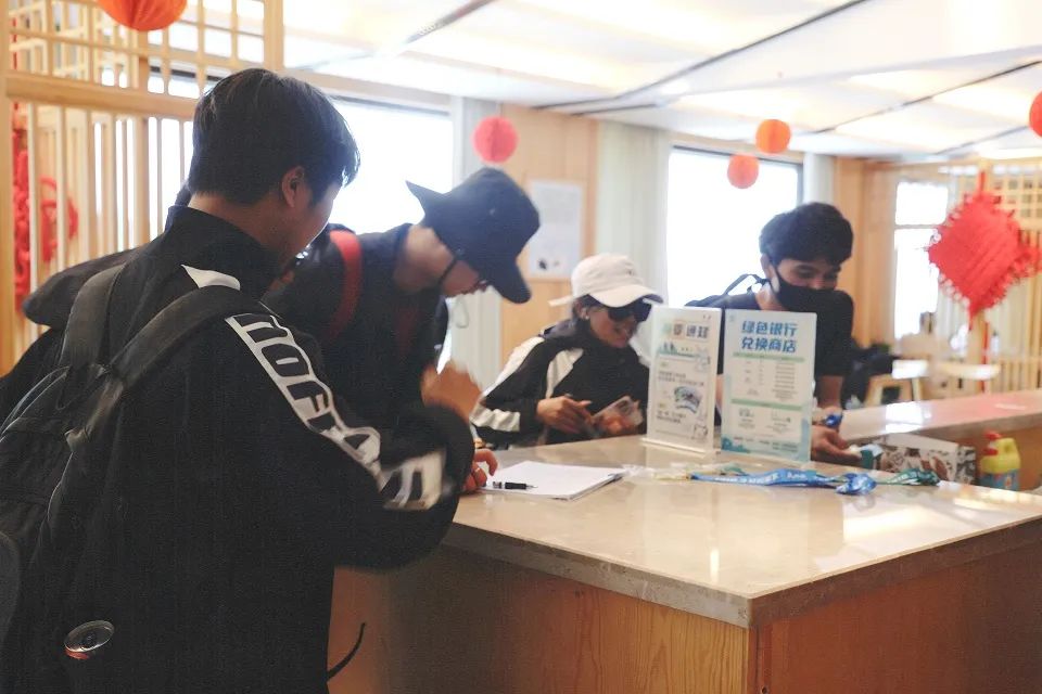 在石鼓寺特种兵驿站,“绿色环保银行”服务点格外醒目,工作人员正为游客清点废弃水瓶数量。“每收集满30个瓶子兑换一份礼品,60个瓶子就可以兑换一枚奖牌!”志愿者小李一边向游客介绍规则。