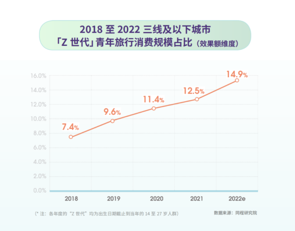 1、《2022「Z世代」青年在线旅游消费洞察报告》显示,近五年来三线及以下城镇的“Z世代”青年在线旅行消费保持稳步上升势头,小镇青年正成为在线旅游消费的重要力量。
