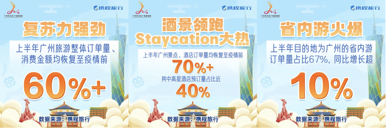《2022年上半年广州旅游趋势报告》数据显示,上半年,广州酒店的订单量已恢复至疫情前的七成,预订间夜量恢复至六成。广州景点门票订单量恢复至74%,出游人次恢复至56%。省内游趋势越发明显,今年以来,目的地为广州的省内游订单量占比为67%,同比去年增长超10个百分点。